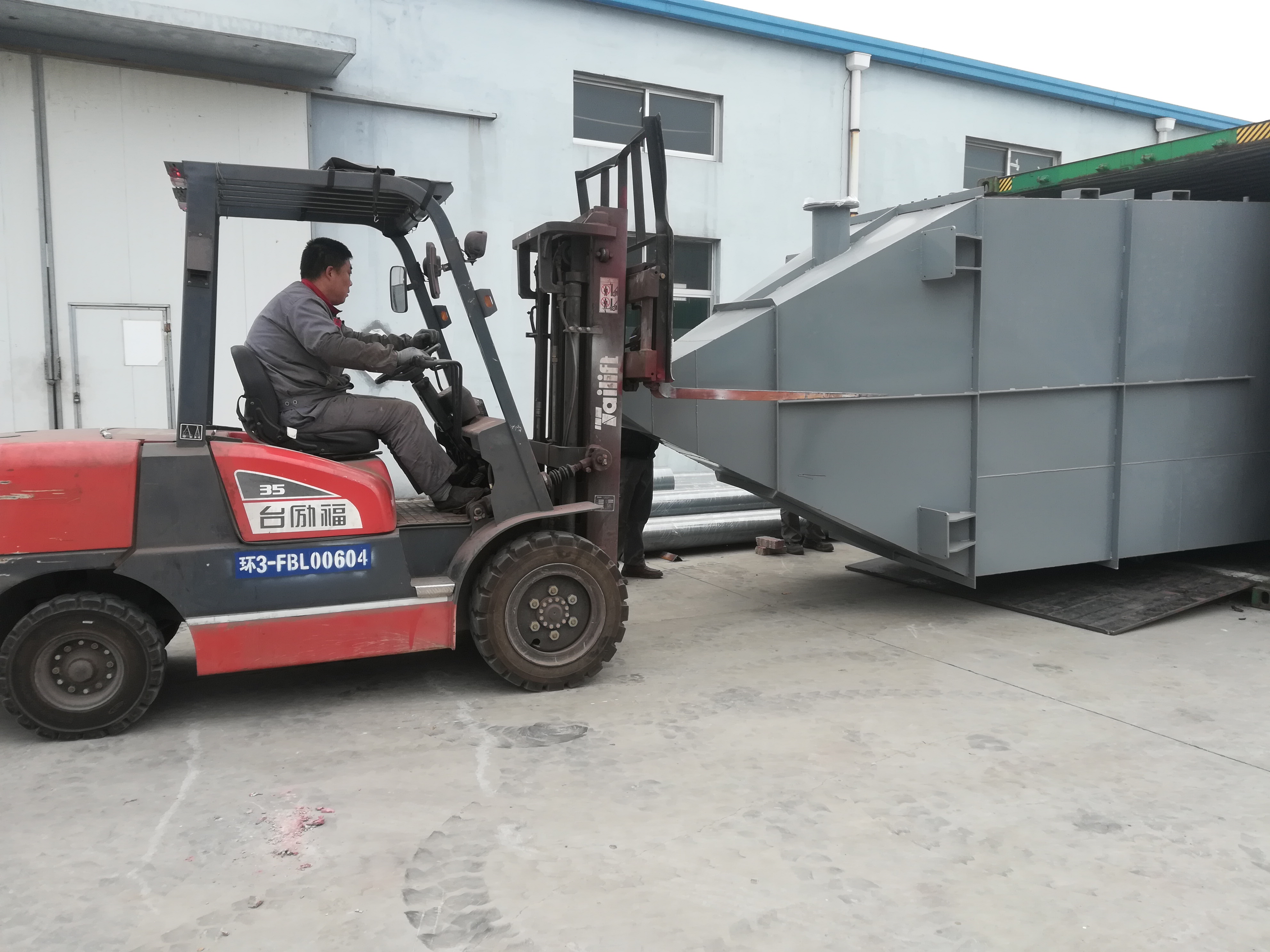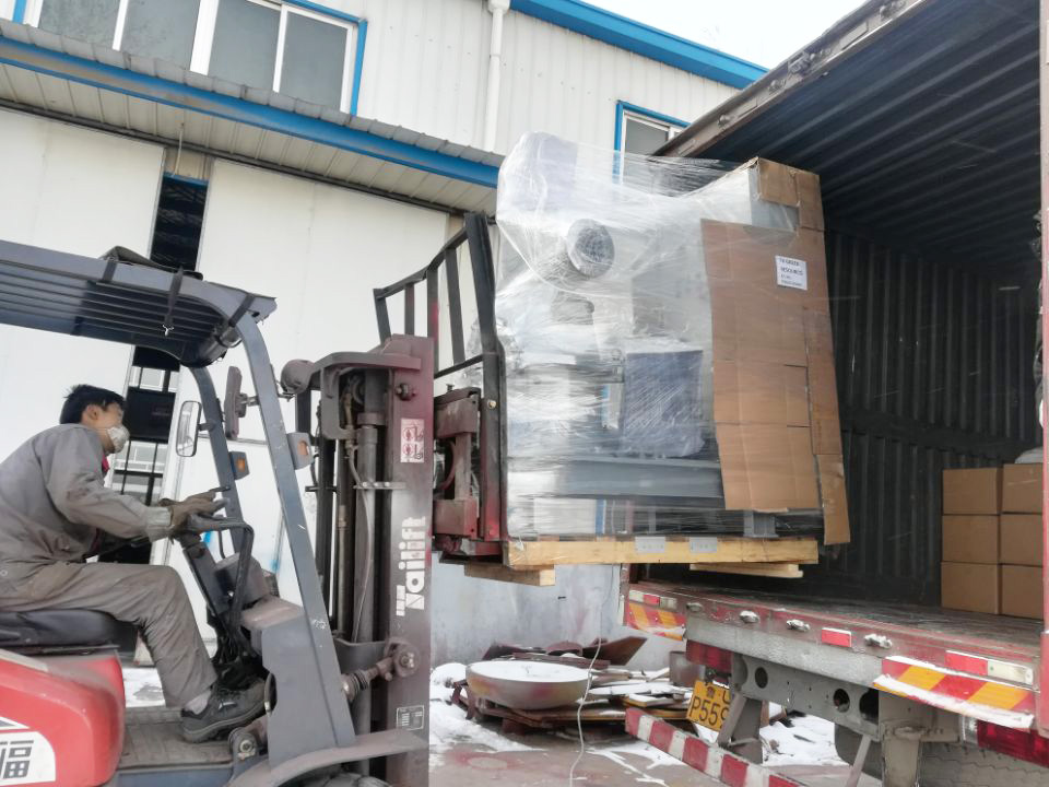 車間師傅們迎著冷冷的寒風,配合叉車,快速而有序的裝貨。