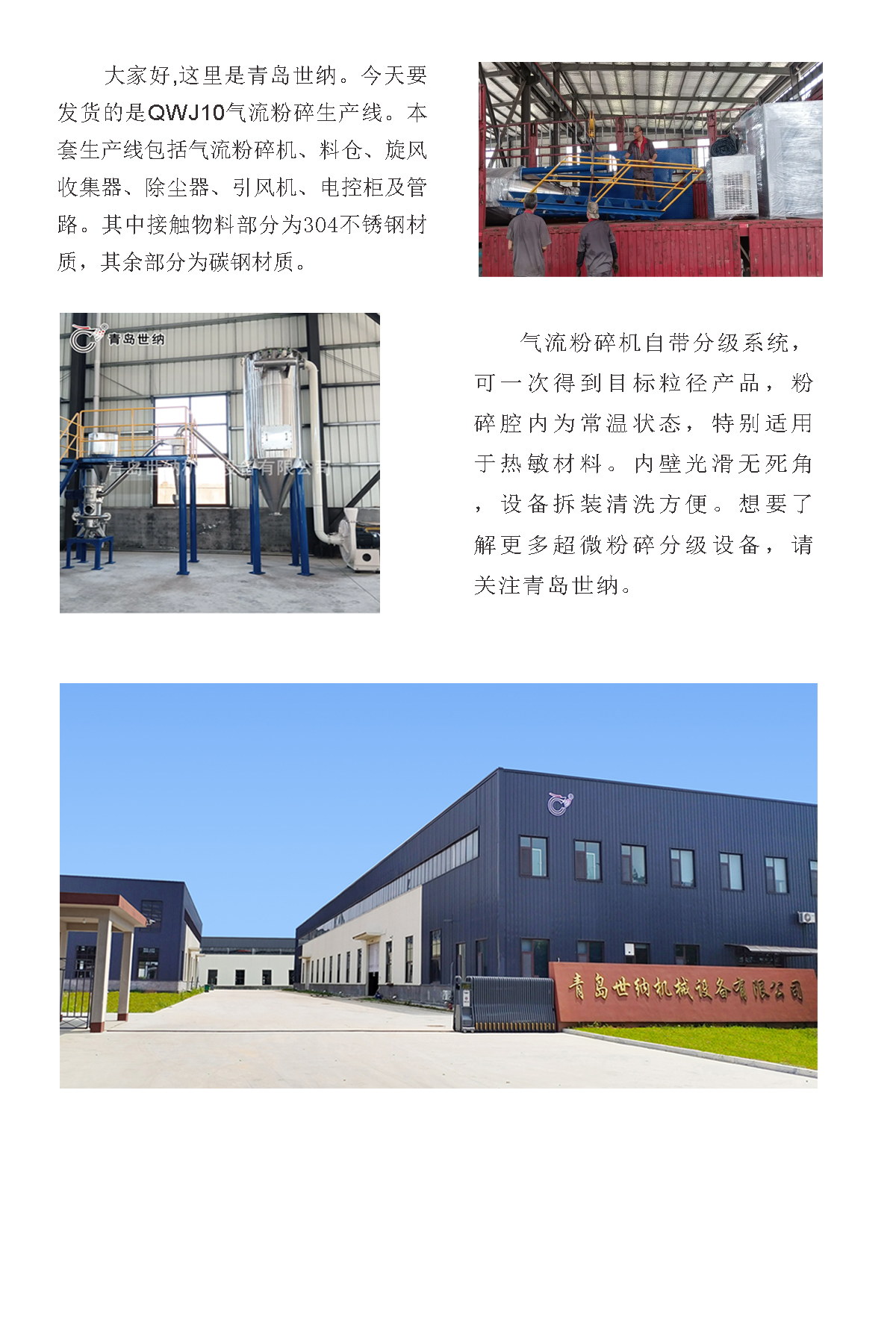 【青岛世(shì)纳】QWJ10不锈钢气流粉碎生产线发货现场