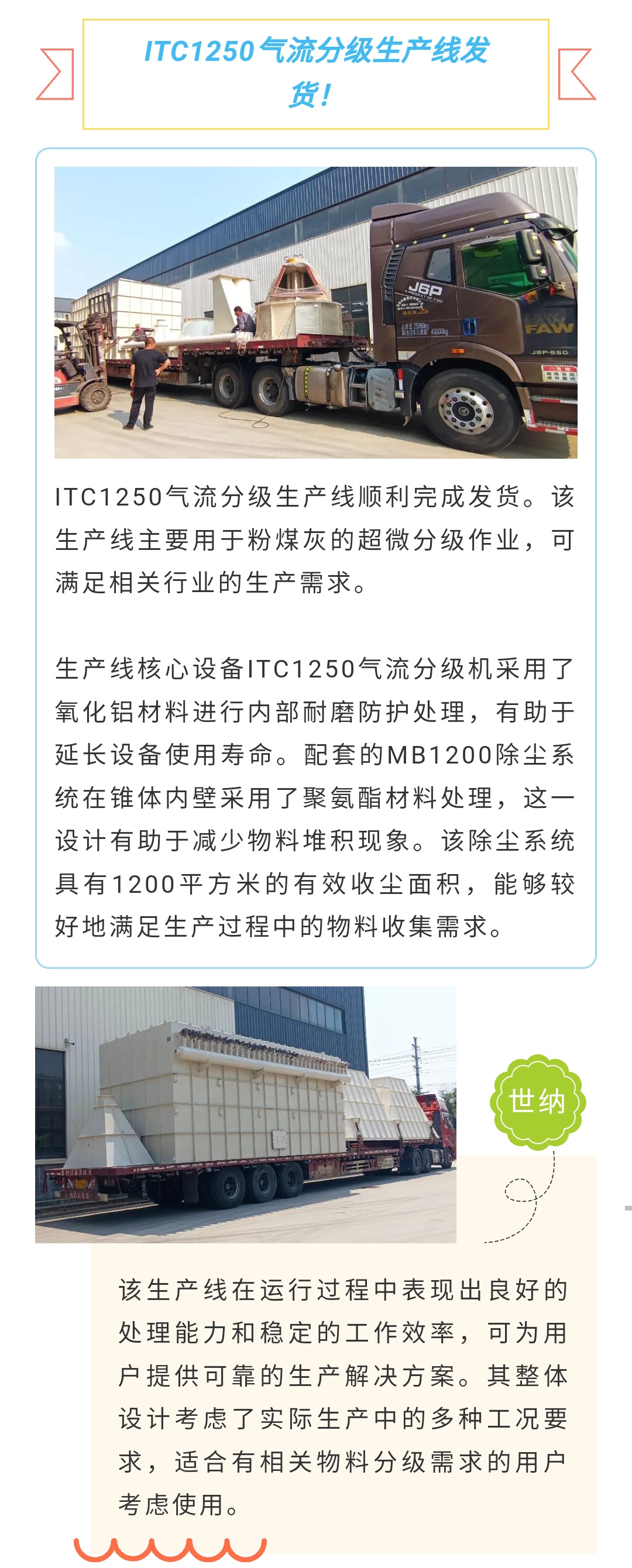 【青岛世纳】ITC1250气流分级生产线发货